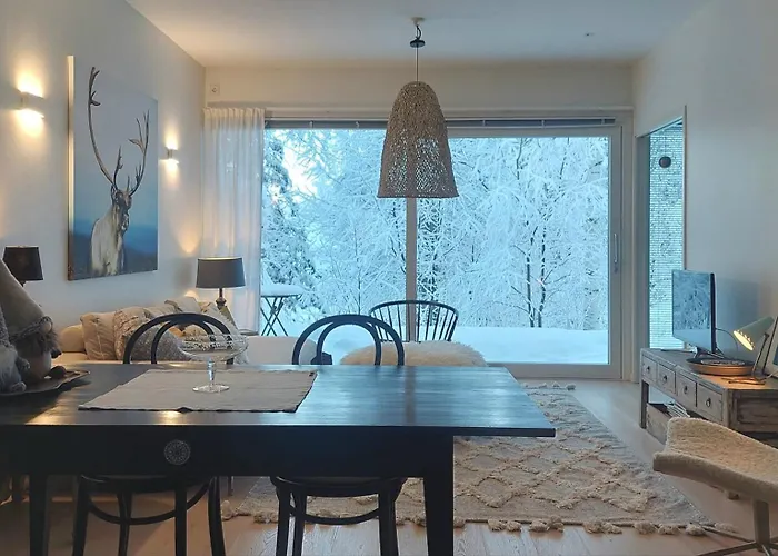 The 55 m² Arctic Luxury Home Rovaniemi apartment is located only 1.6 km from the Revontuli Shopping Center and about a 20-minute walk from the Lordi's Square. The apartment is situated 20 minutes on foot from Rovaniemi train station and just moments from Paloasema L bus station.
